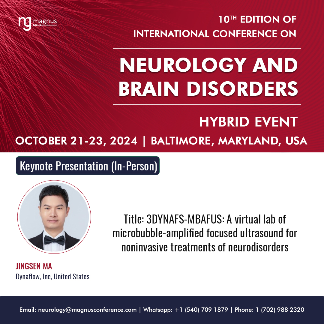 Save the date for our International Conference on Neurology and Brain Disorders hosted by Magnus Group in Baltimore! We are excited to feature the exceptional Keynote speaker, Jingsen Ma from Dynaflow, Inc. United States.